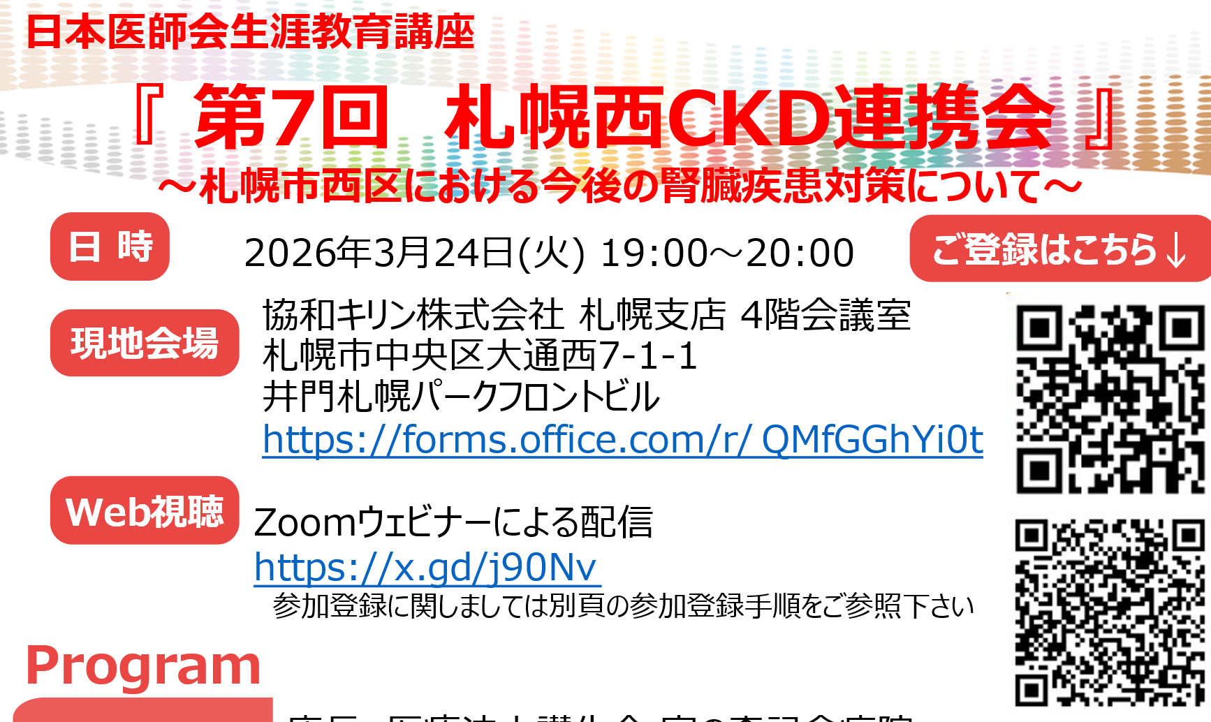 メインの講演は、北海道大学病院 腎臓内科 診療准教授の中沢大悟先生が「中核都市におけるCKD診療の現状度課題」です。